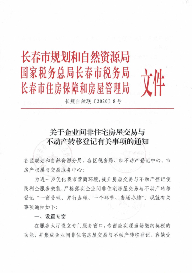关于企业间非住宅房屋交易与不动产转移登记有关事项的通知