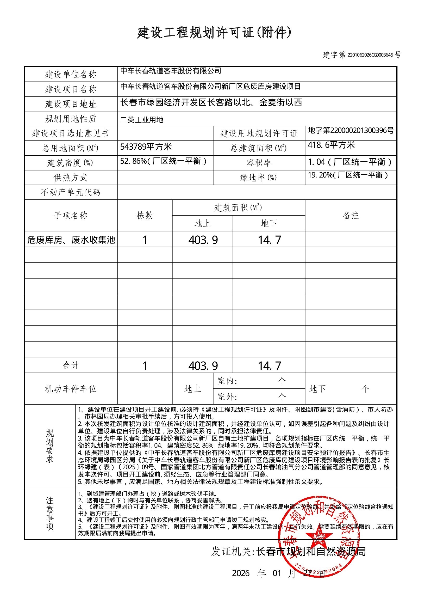 中车长春轨道客车股份有限公司新厂区危废库房建设项目